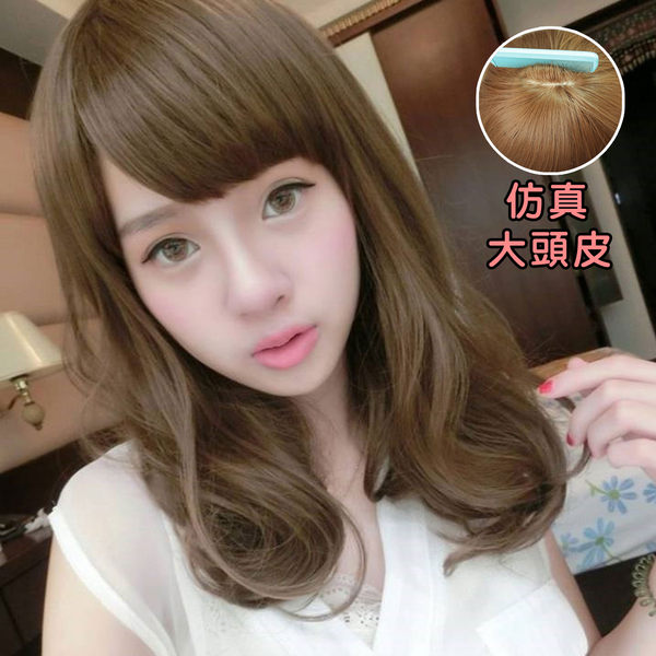 高仿真大頭皮可愛LOOK!!平斜瀏海波浪中長髮(加大頭皮)【MA124】雙兒網